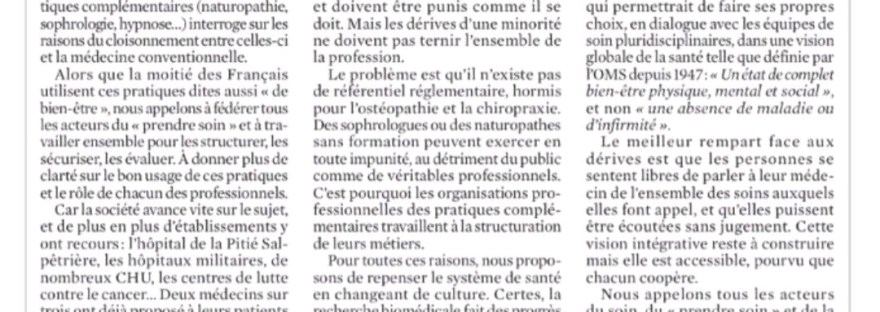 Ce concept est enfin en train d'éclore et de se structurer. De quoi s'agit-il ? Il s'agit du rapprochement entre la médecine conventionnelle et les thérapies complémentaires permettant de proposer une offre complète de soins aux patient(e)s au sein d'un parcours coordonné. Une offre qui va de la prévention (qu'il est nécessaire de privilégier tout… Lire la suite Pour une santé intégrative